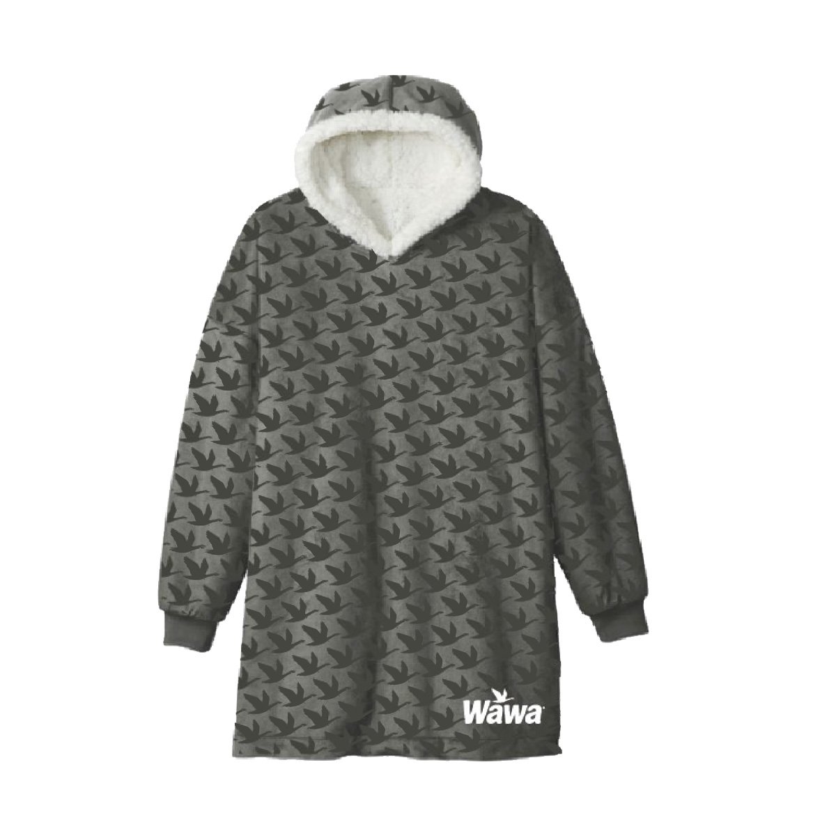 This pullover blanket hoodie is perfect for lounging and layering on those cold winter days. Keep your hands warm with the front kangaroo pocket and your head warm with the fleece lined hood. One size fits most.